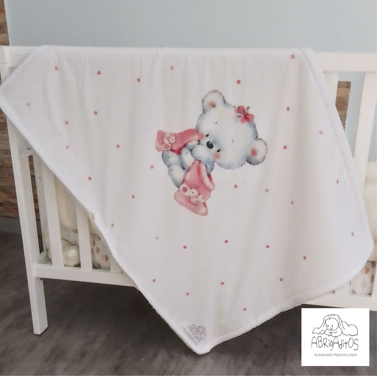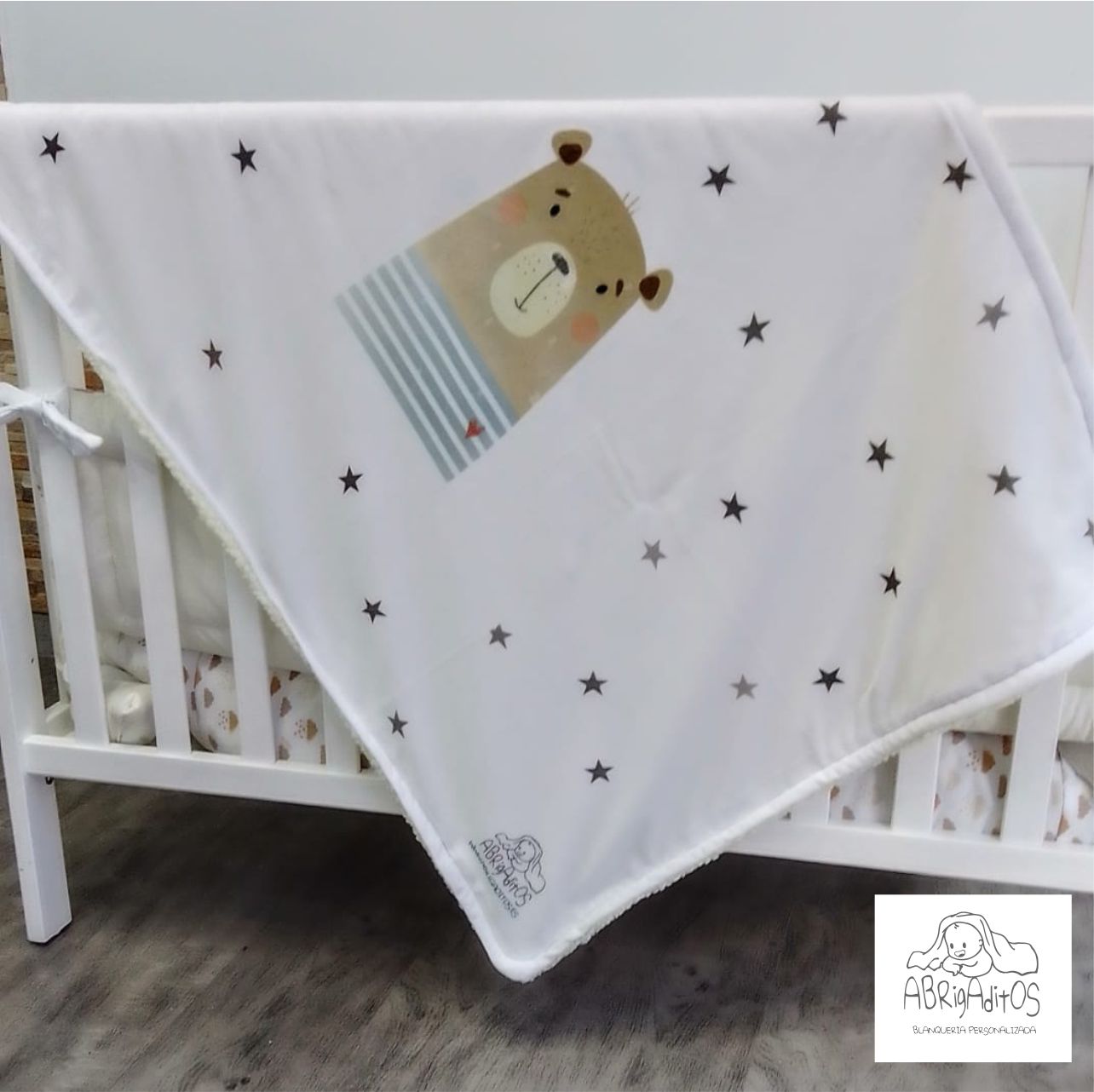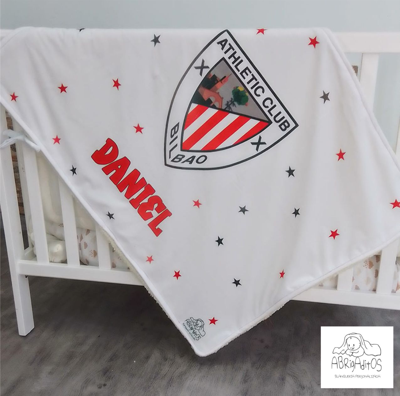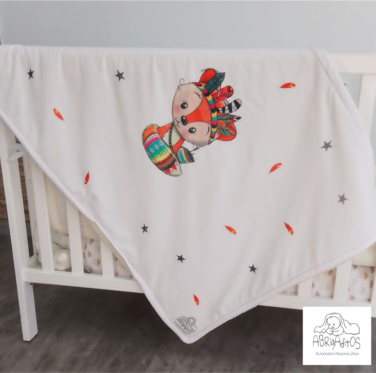 Es muy cómoda y se puede personalizar con el nombre del bebé y el diseño que te guste. Son de 75 x 100 aprox