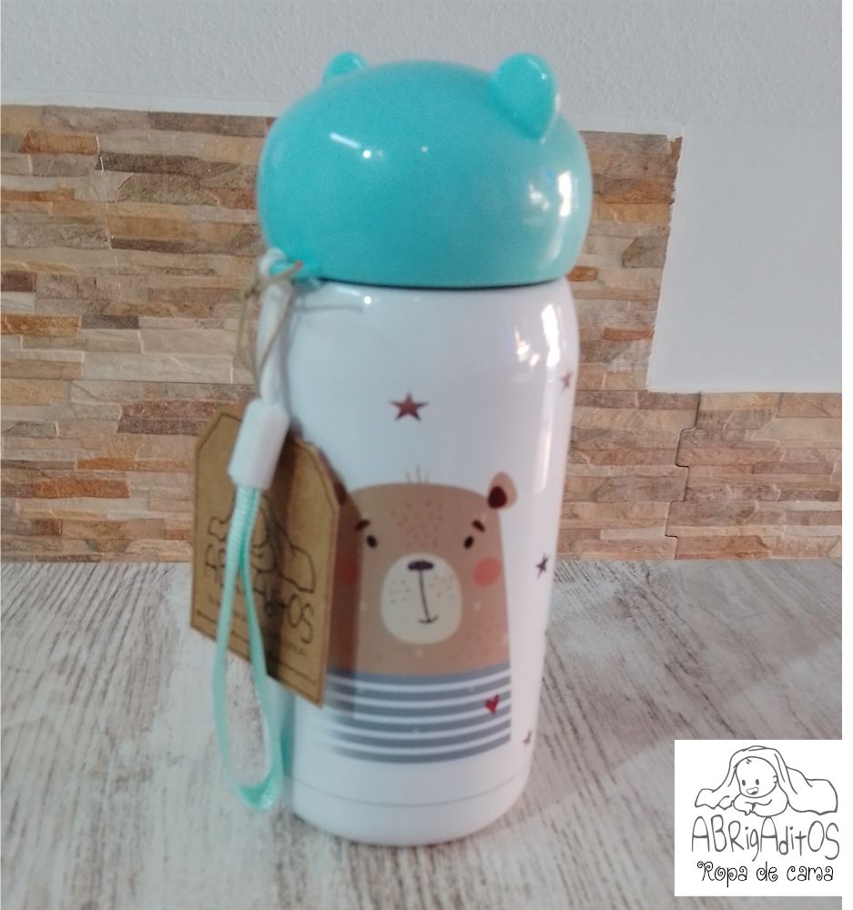 - Tapón de rosca con forma de osito, a elegir entre rosa y azul turquesa.