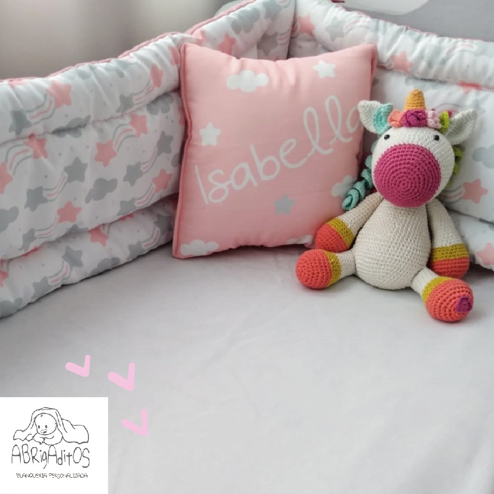 Las chichoneras las hacemos a medida para la cuna que tengas. Pueden ser de tres cuerpos, para q te cubran la cabecera y los dos laterales completos. O de cuatro cuerpos, para los cuatro laterales de la cuna. y vienen con un almohadón de regalo