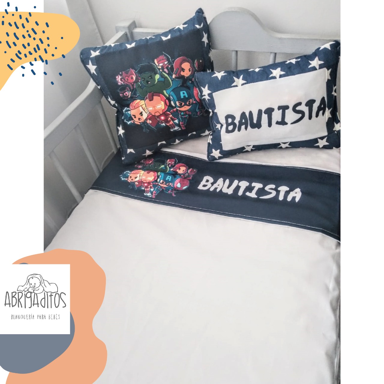 Para la cuna que tengas, una plaza, o plaza y media. Trabajamos de batista o percal. Las de batista son lisas, en el color que te gusten , y la de arriba, la parte que dobla, lleva un detalle a tono con el acolchado. En diseño o personalizado con el nombre.